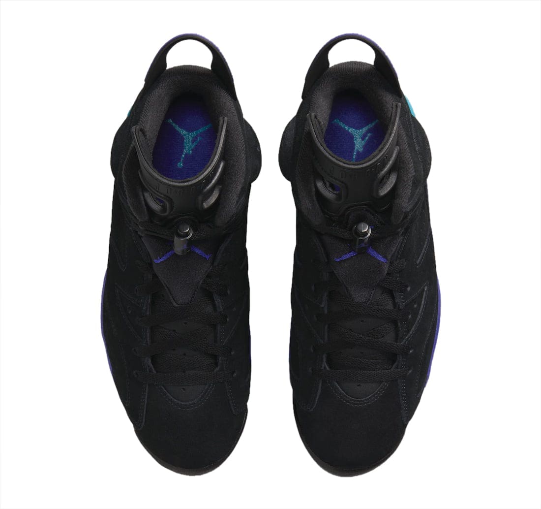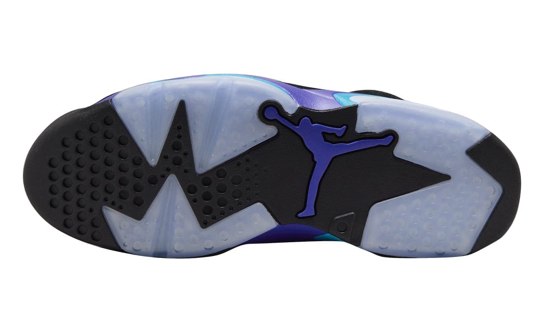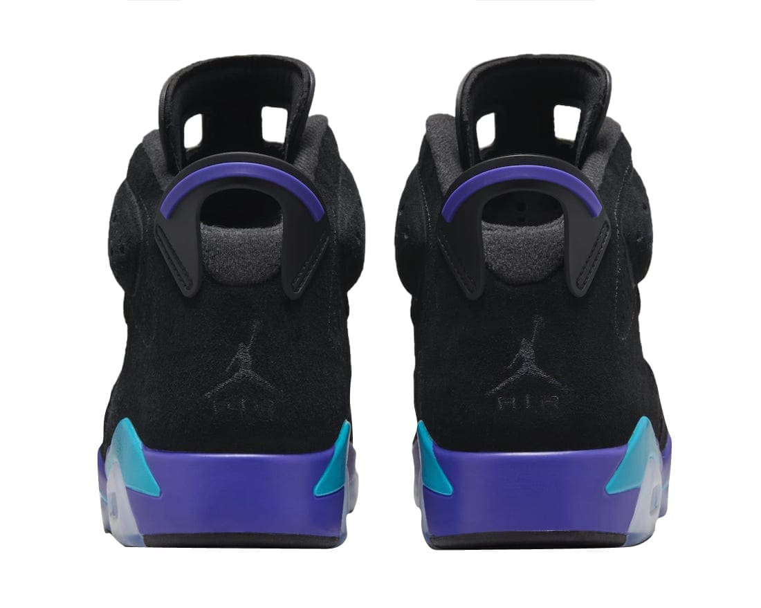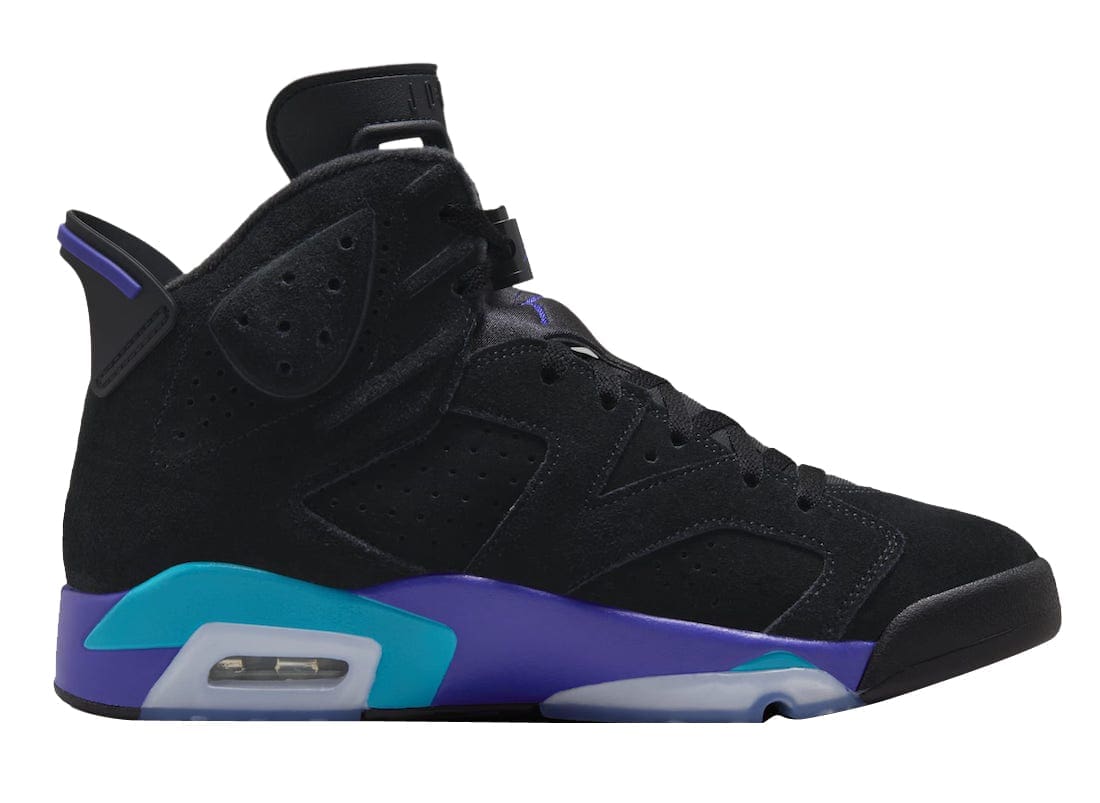 Inspired by the iconic Air Jordan 8 u201cAquau201d, this release in very similar to the 2010 sample. Dressed in a Black, Bright Concord, and Aquatone color scheme, this Air Jordan 6 features a Black nubuck upper with Concord and Aquatone contrasting accents throughout atop an icy translucent outsole. Black also takes care of the laces, rubber tongue and tonal branding on the heels.
