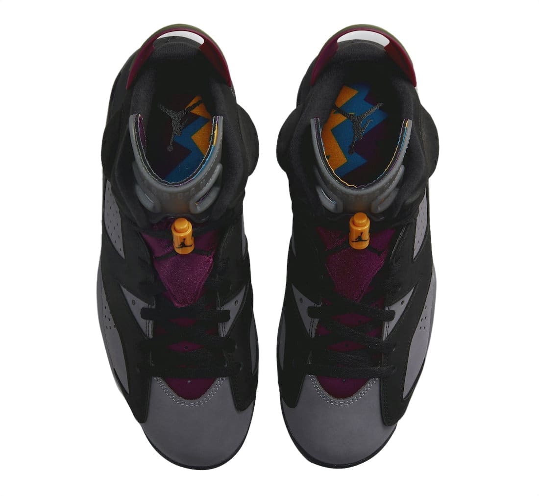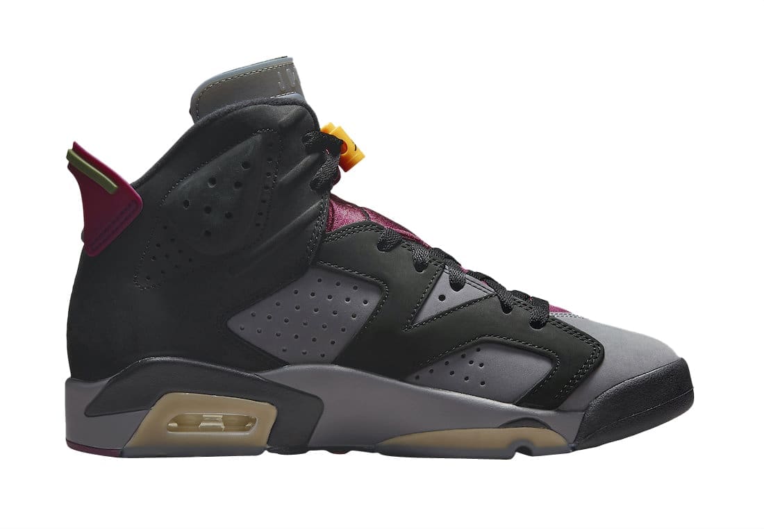 Done in an official color scheme listed as Black, Light Graphite, Dark Grey, and Bordeaux, this Air Jordan 6 dons a genuine nubuck upper made out of Light Graphite underlays and Dark Grey overlays. The two-toned upper is accompanied by the Bordeaux-printed translucent tongue and sock liner. Solid Bordeaux hits take care of the tongu overlay and heel pull tab. Coming in familiar packaging with a fresh color twist, this shoe releases in menu2019s and GS sizing. A two-toned midsole and translucent outsole round out the main features of the sneaker.
