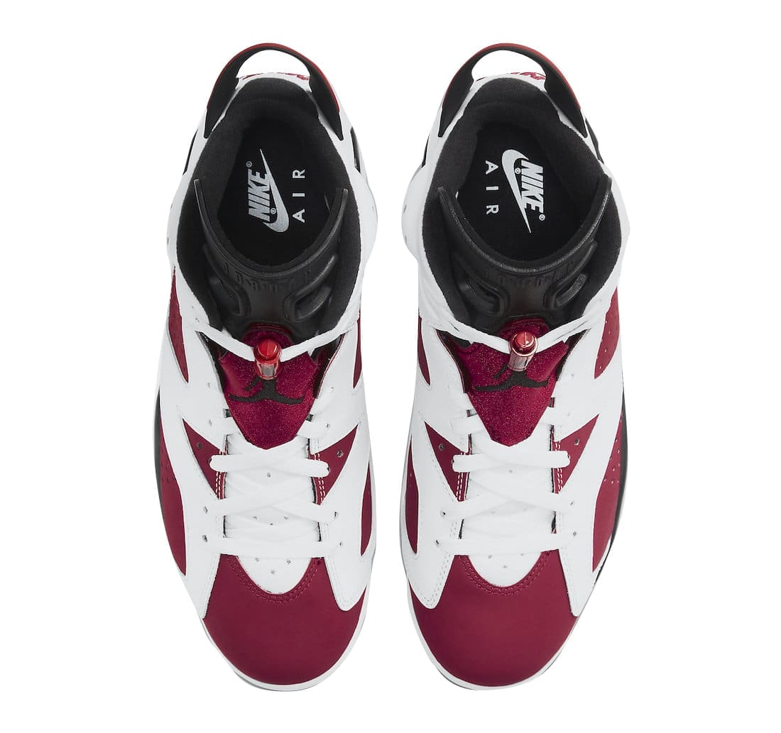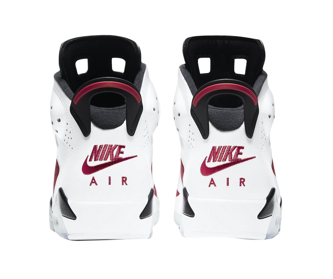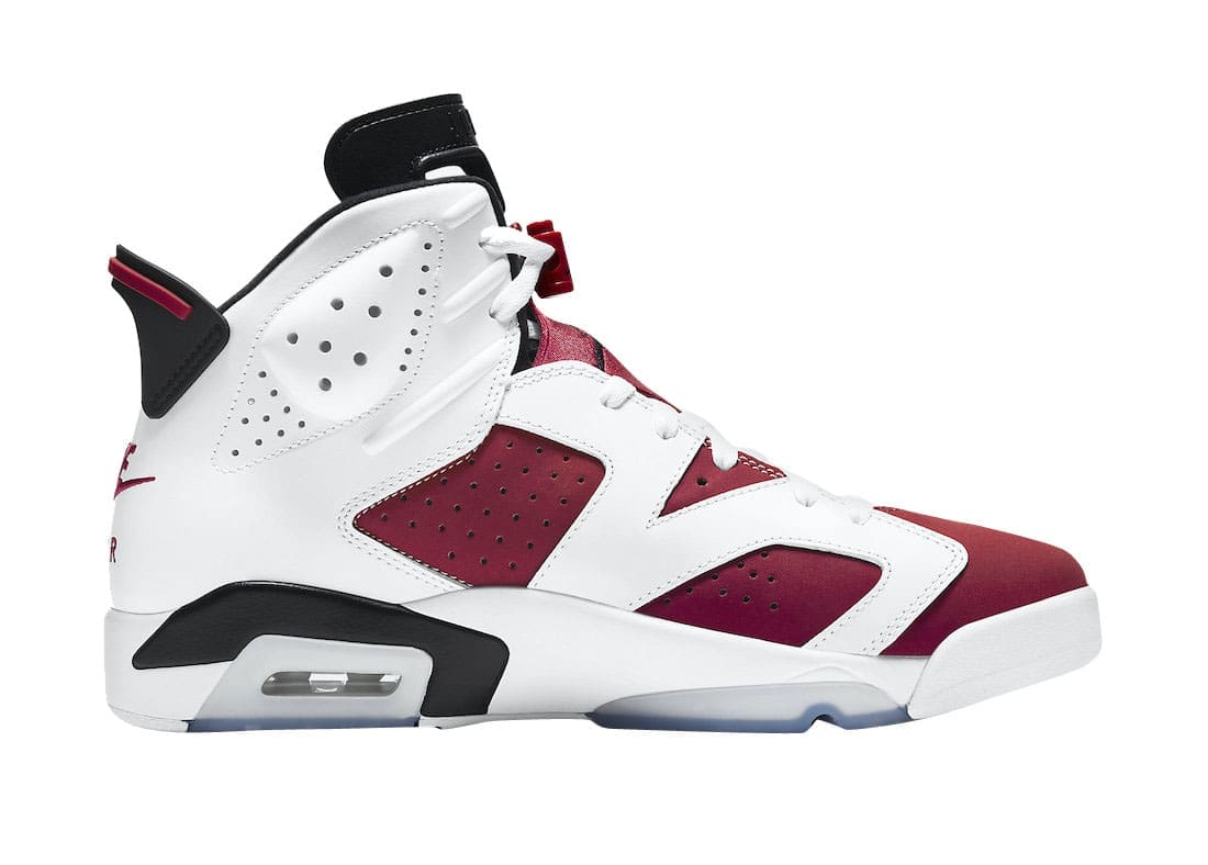Reflective of its OG 1991 aesthetic, the Air Jordan 6 Carmine 2021 retro dons the familiar White/Black-Carmine color scheme, while also bearing the original height and u201cNike Airu201d branding on the heels. Finally, Nike-branded lace locks and icy blue translucent outsoles top off the design. Air Jordan 6 fanatics, this is surely a must-cop, right?
