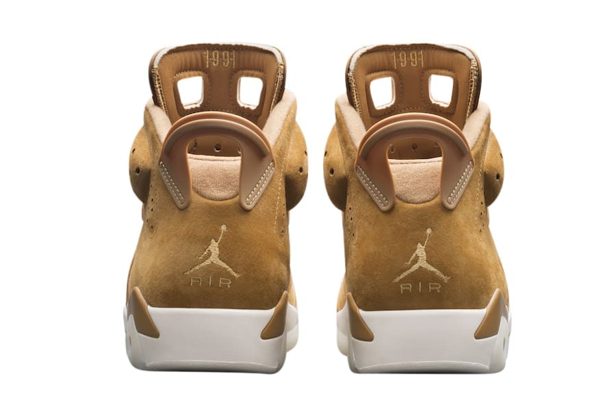 Fitting in perfectly with the upcoming Fall season, the Air Jordan 6 Golden Harvest/Wheat comes constructed out of a premium suede all throughout the upper in a Golden Harvest hue. Contrasting Sail has then been added on the Jumpman by the tongue, the midsole, and the milky white translucent outsole.