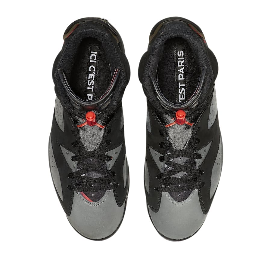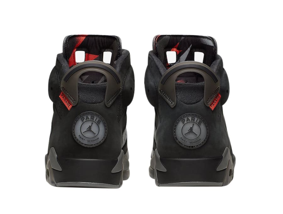 The Air Jordan 6 PSG comes covered in a simple color scheme of Iron Grey, Infrared 23, and Black with Iron Grey and Black particularly adorn the nubuck construction, while pops of Infrared are prominent on the lace lock, branding on the tongue and u201cPANAMEu201d tag stitched under each heel. Other finishing details consist of a PSG medallion on the back heel, along with u201cParisu201d and u201c75u201d printed on the lace locks.