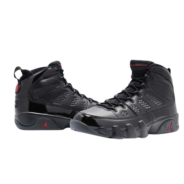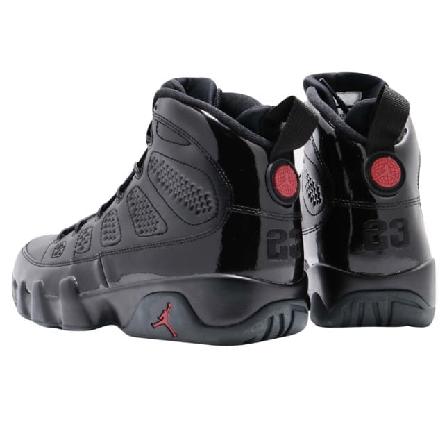Dressed in a mix of Black, Anthracite and University Red. Thisu00a0Air Jordan 9u00a0features a Black leather and patent leather upper with a matching Black midsole. University Red contrasting accents is seen on the branded tongues, heels and midsole. Anthracite finishes off the look that fills the shoeu2019s rubber sole.