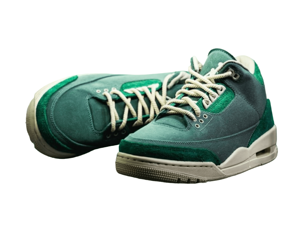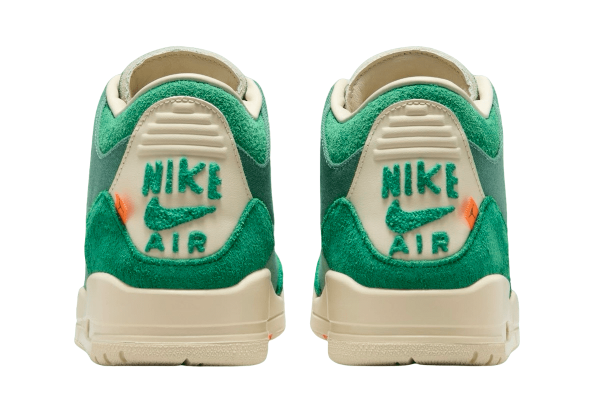 The Nina Chanel Abney x Air Jordan 3 OG SP WMNS will arrive in a Bicoastal, Black, Malachite, and Fossil color scheme. The sneaker comes covered in a rich shade of green all over the upper which takes on a premium canvas and suede construction for that lifestyle appeal. Tan detailing then hits the rope style laces, eyelets, inner liner, heel tabs, and the entire rubber sole unit. Nike Air branding on the heels and Jumpman logos on the tongues wrap up the main details of this collaborative Air Jordan 3.