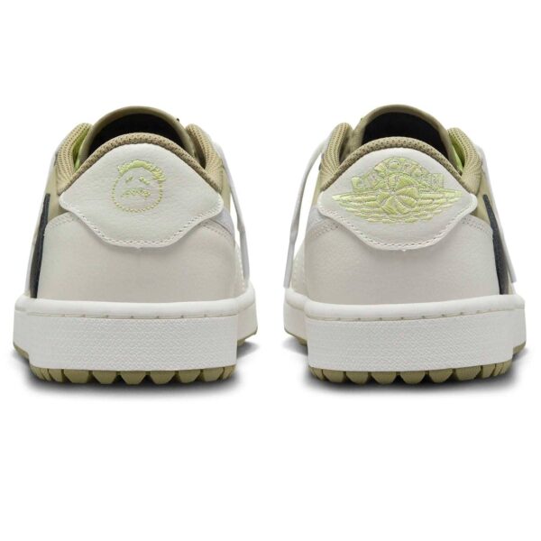 The Air Jordan 1 Low Golf x Travis Scott ‘Neutral Olive’ puts a fresh spin on the classic sneaker, specially designed for golf enthusiasts. On the upper, an inverted black leather Swoosh elegantly sweeps along the side, while the base sports olive nubuck, complemented by off-white leather overlays at the front and back. The tongue showcases a distinctive woven Jordan Golf tag in a vibrant lime green shade, coordinating with the Cactus Jack and Jordan Wings logos on the shoe’s back tabs. Below, the rubber outsole incorporates a traction pattern for exceptional grip on the golf course.