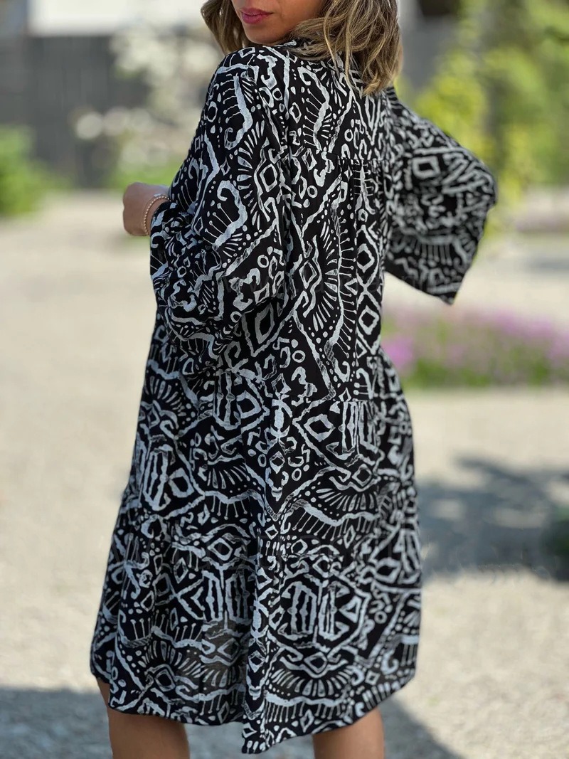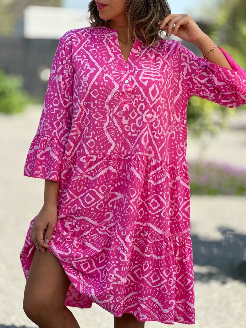 • V-Neck Flared Sleeve Romantic Print Splicing Dress For Women