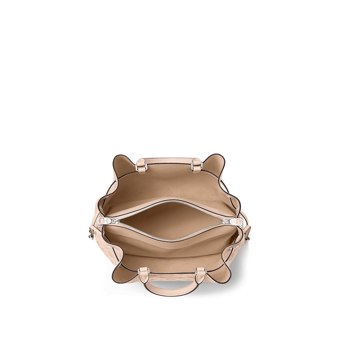 A cross between a bucket bag and carryall, the roomy Bella Tote bag is fashioned from Mahina perforated calfskin leather. Here the perforations are in a slightly darker shade to emphasize the Monogram pattern. Spacious and lightweight, with two separate inside compartments, it’s perfect for everyday use. 32 x 23 x 13 cm